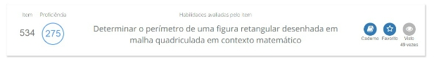 No topo da página de itens, encontra-se a descrição com as habilidades avaliadas. Por exemplo, a sentença abaixo é de uma questão da prova de Matemática do 5º ano: