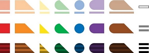 Para possibilitar que “enxerguem” as cores, o Feelipa Color Code utiliza o sentido que mais auxilia os deficientes visuais: o tato. As cores foram transformadas em figuras geométricas, criando um código universal de associação. O vermelho é representado por um quadrado, o azul, por um círculo, e o amarelo, por um triângulo, assim, ao tocar as formas, o usuário percebe a qual cor elas correspondem. Para se obter outras cores, basta misturar as primárias e gerar novas formas, como na imagem a seguir: