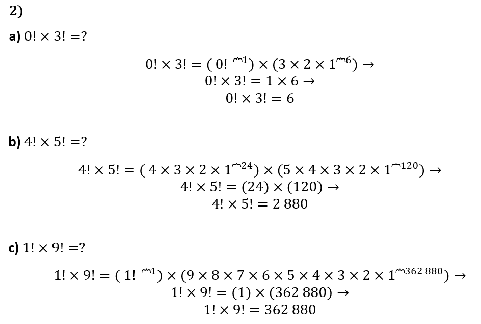c) 9!=9×8×7×6×5×4×3×2×1=362 880